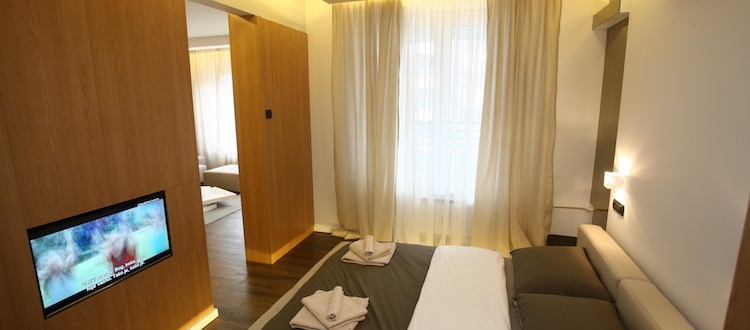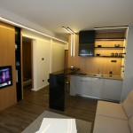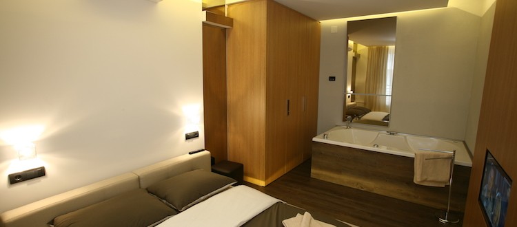 Kuriozitet ovog apartmana je svedeni enterijer spavaće zone u toplim tonovima drveta sa dominantnom hidromasažnom kadom (đakuzijem).