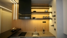 Naglasak je na geometrijskom poigravanju pravougaonim volumenima neutralnih boja, bez previše detalja i suvišnih elemenata. Toplina boje poda i drvenih zidnih obloga, osvetljaj prostorija, diskretni kontrasti naglašenih linija difuznog osvetljenja, akcentovanje vinske police inkorporirane u betonski zid, čine da Vas ovaj prostor hipnotiše svojom elegancijom, toplinom i komforom. Jednostavnost ovog enterijera će Vas inspirisati i okružiti vas pozitivnim mislima.