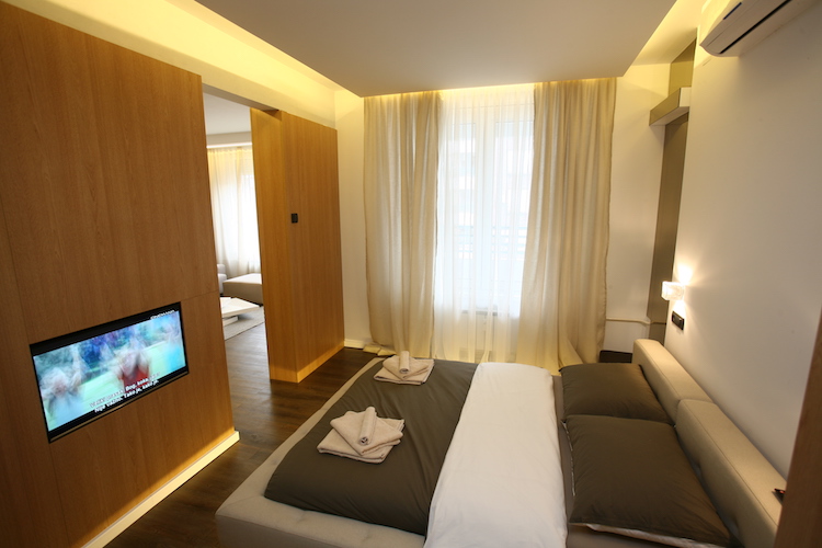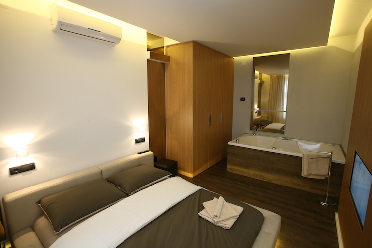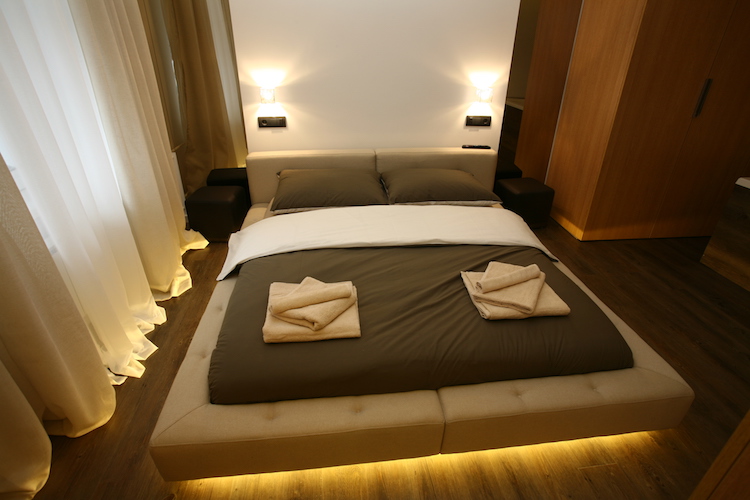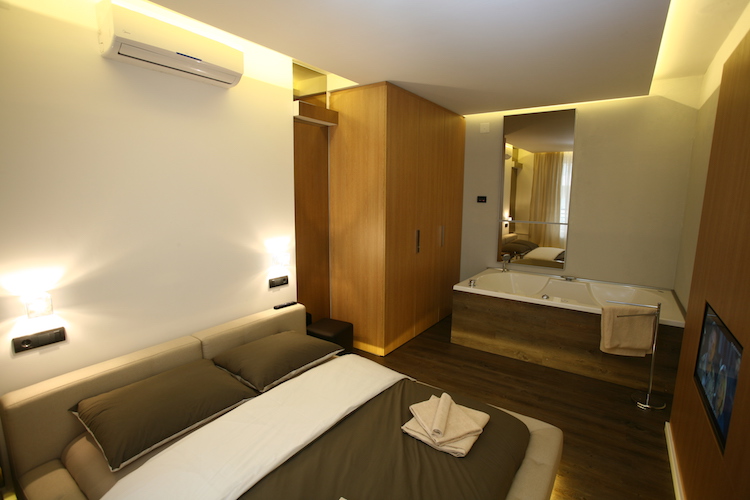 Kuriozitet ovog apartmana je svedeni enterijer spavaće zone u toplim tonovima drveta sa dominantnom hidromasažnom kadom (đakuzijem).