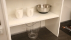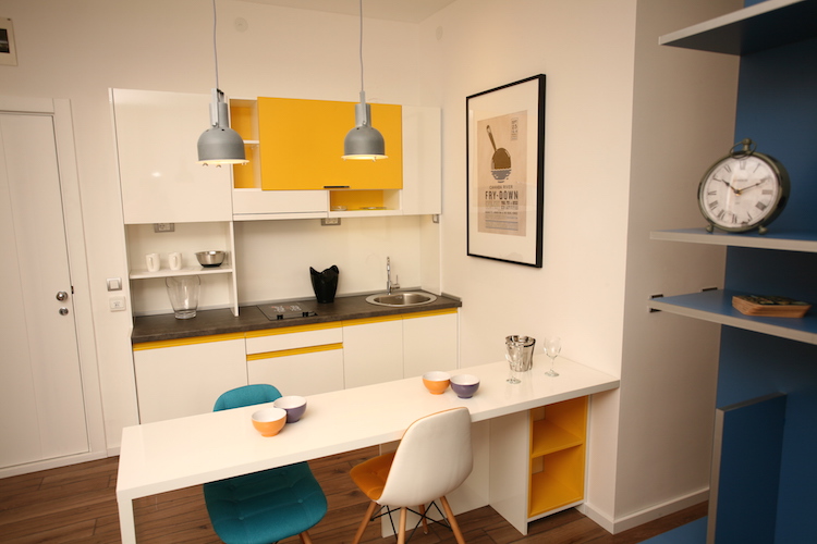 Kuhinja je opremljena osnovnim  aparatima za pripremu toplih napitaka i jednostavnijih obroka (frižider, grejna ploča, sudopera) u sklopu koje se nalazi i pult za obedovanje.