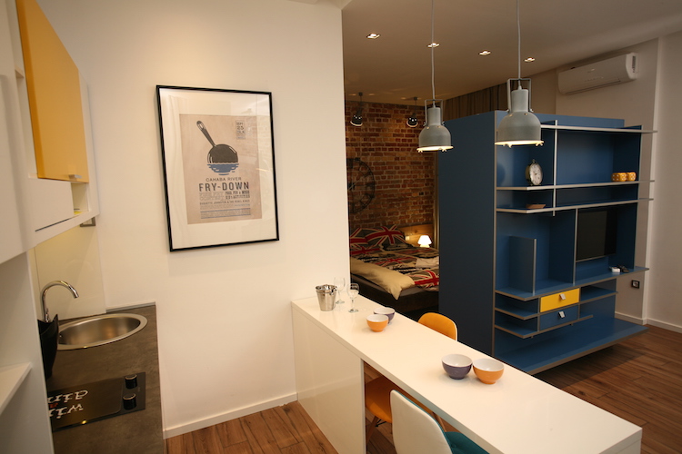 U funkcionalnom smislu prostor je definisan kao studio apartman sa integrisanim prostorima  predsoblja, kuhinje, trpezarije, dnevnog boravka i prostora za spavanje.