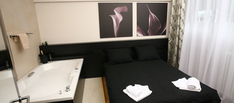 Kuriozitet ovog apartmana je svakako enterijer spavaće zone u crnoj boji sa dominantnom hidromasažnom kadom i lavaboom u okviru sobe, transparentnim prostorom za tuširanje i izdvojenim toaletom.