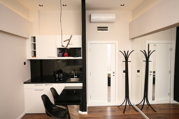 U funkcionalnom smislu prostor je podeljen na dnevnu zonu (koju čine predsoblje, čajna kuhnja sa pultom za obedovanje i dnevna soba) i prostrani studio za spavanje sa integrisanim otvorenim konceptom kupatila.