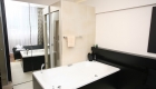 Kuriozitet ovog apartmana je svakako enterijer spavaće zone u crnoj boji sa dominantnom hidromasažnom kadom i lavaboom u okviru sobe, transparentnim prostorom za tuširanje i izdvojenim toaletom.